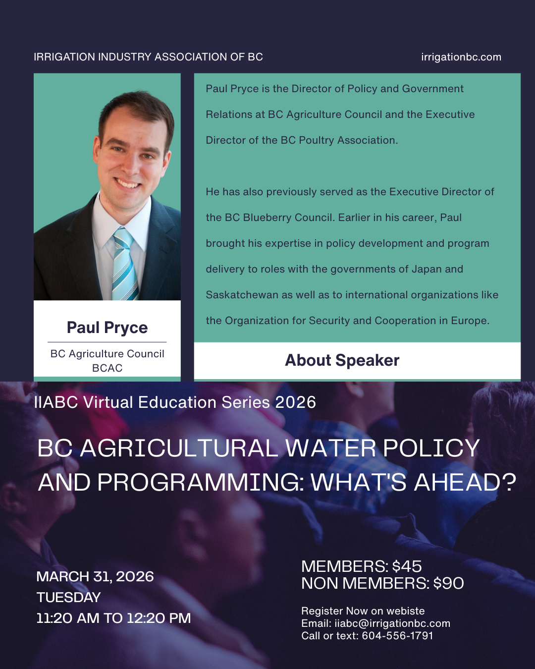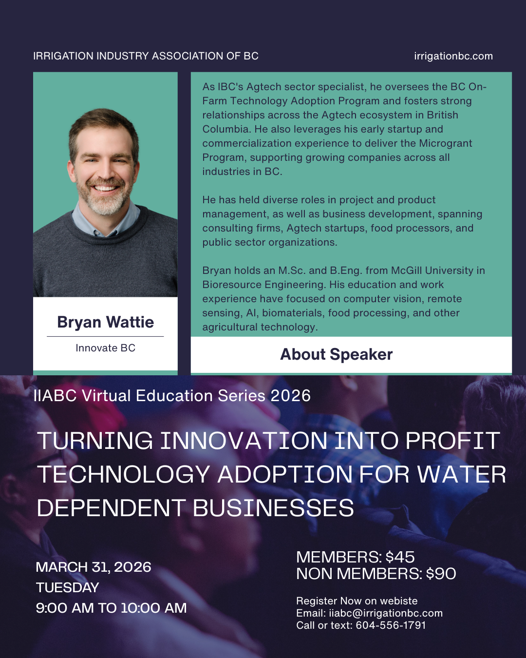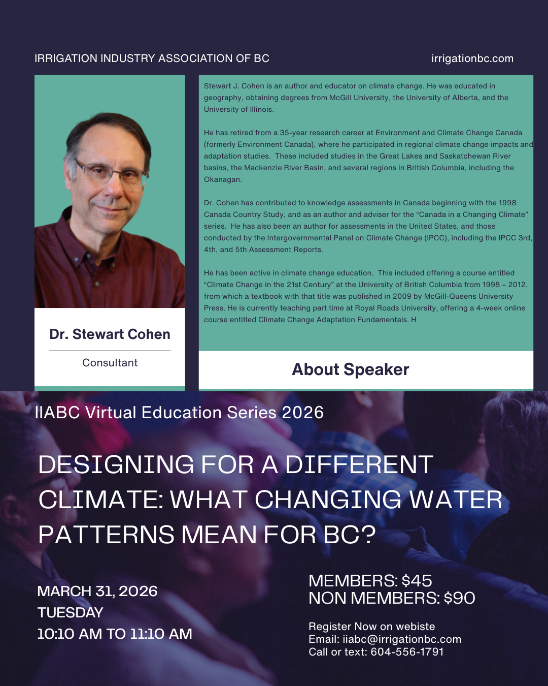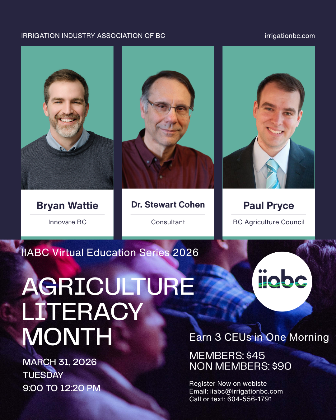 Join IIABC for a focused half day virtual learning experience designed for irrigation and water dependent professionals across British Columbia.